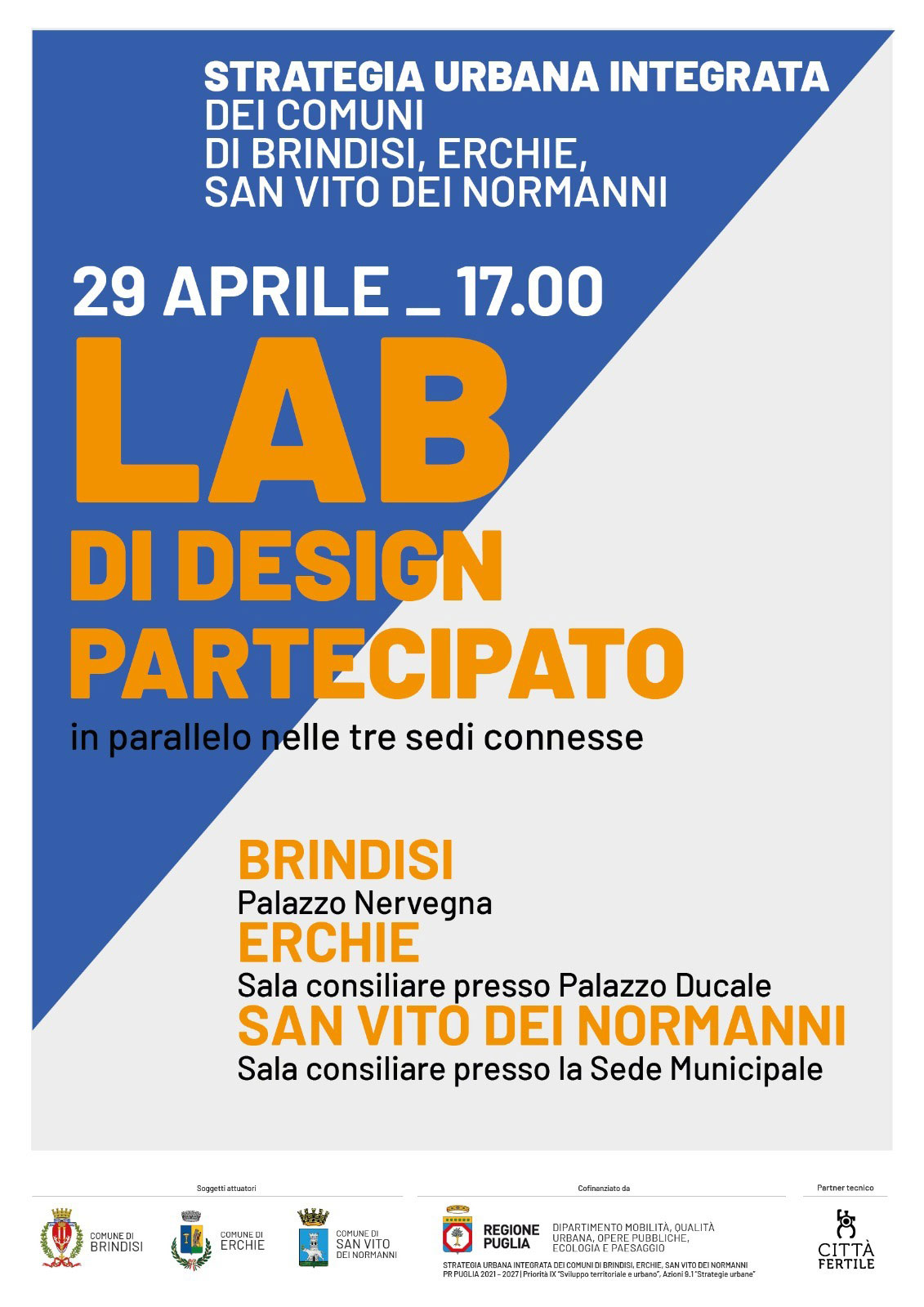 Nell’ambito dell’Programma Regionale Puglia FESR-FSE+ 2021-2027, i Comuni di Brindisi, Erchie e San Vito dei Normanni costruiscono una strategia di rigenerazione urbana integrata. Partendo dall’assunto che il benessere di cittadini e cittadine sia il motore principale dello sviluppo territoriale, migliorando la qualità della vita delle comunità locali si può rendere un territorio più dinamico, resiliente e attrattivo.